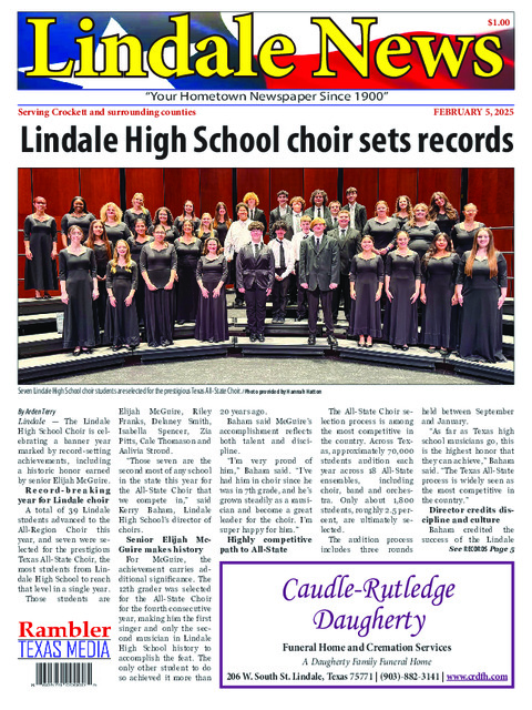 Lindale—The Lindale High School Choir is celebrating a banner year marked by record-setting...