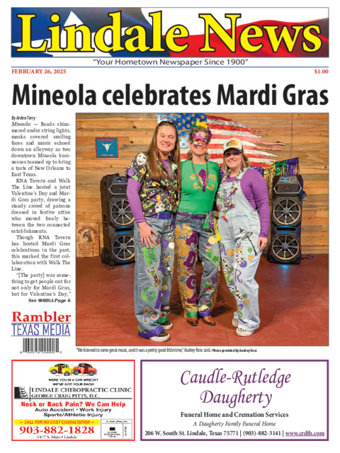 Mineola—Beads shimmered under string lights, masks covered smiling faces and music echoed down an...